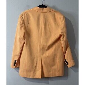 The EVERLANE 80's Oversized Blazer in Size 2 is a stylish and versatile piece perfect for various occasions such as casual outings, workwear, and parties. Made from a cotton blend, this solid orange blazer features long sleeves and an oversized fit for a modern and preppy look. With its retro 80's theme and classic style, it adds a pop of color to any outfit while showcasing the quality and timeless design of the Everlane brand. Perfect for the fashion-forward woman looking to make a statement.