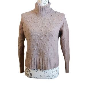 EVERLANE The Alpaca Merino Wool Pom-pom Turtleneck Size XXS in Wheat Tan Cozy