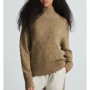 Description Festive meets alpaca. Featuring a cool rib pattern and a pom-pom design, the Alpaca Pom-Pom Sweater has all the warmth of a cozy winter knit with a plush, airy feel. We love alpaca because its less prickly, longer-lasting, and resists pilling. Plus, its better for the environmentalpacas are soft-hooved and gentle grazers, which makes them easier on pastures than other herd animals. Elevate your wardrobe with this chic and cozy sweater from Everlane. The turtleneck design and balloon sleeves provide a stylish touch, while the lightweight and tight-knit Pima cotton, Alpaca and Merino wool blend ensures comfort. This versatile sweater comes in a beautiful brown color, making it perfect for both casual and party occasions. Hand wash only for easy maintenance.