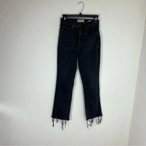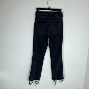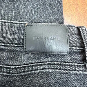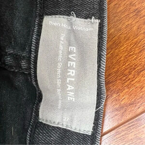 EVERLANE The Authentic Stretch Slim Bootcut Jean Raw Hem Size 27 Black.