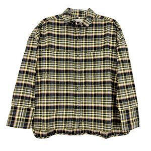 The Everlane Boxy Flannel Shirt in size M is a stylish and versatile addition to any woman's wardrobe. This oversized, multicolor plaid shirt features a collared neckline, long sleeves, and a button closure for a classic look. Made from cozy cotton flannel, this relaxed fit shirt is perfect for a casual yet fashionable style. Easy to care for with machine washable fabric, this button-up shirt is a must-have for any basic wardrobe collection.