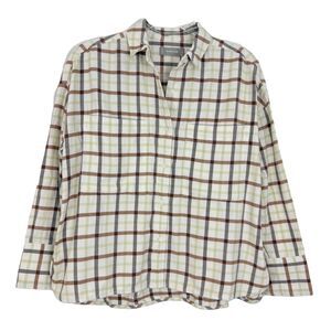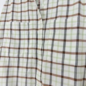 The EVERLANE Boxy Flannel Shirt in XS is a stylish and versatile addition to any woman's wardrobe. Made from cozy cotton flannel, this button-down shirt features a relaxed fit with a collared neckline and long sleeves. The multicolor plaid pattern adds a pop of personality, while the oversized design offers a trendy and comfortable look. Perfect for everyday wear or dressed up with jeans, this shirt is easy to care for with its machine washable fabric.