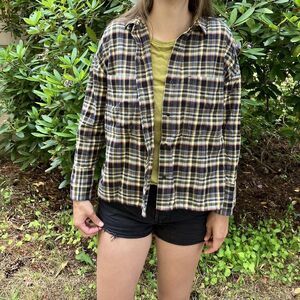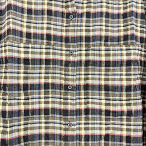 The EVERLANE Boxy Flannel Shirt in XXS features a classic black multi-plaid design, perfect for a relaxed and oversized fit. Made from cotton flannel, this collared button-up shirt is machine washable for easy care. Ideal for women looking for a basic yet stylish addition to their wardrobe, this top offers a comfortable and trendy look. With its long sleeves and regular sizing, this EVERLANE shirt is a versatile and fashionable choice for any season.