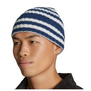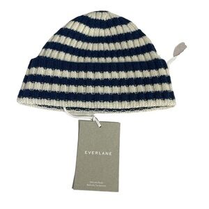 EVERLANE The Cashmere Beanie Navy Stripes Unisex Hat One Size NWT