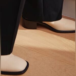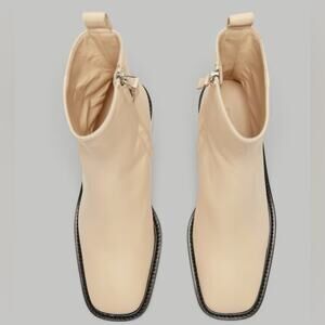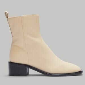EVERLANE The City Boot Leather Ankle Cream Zip Heeled Square Toe Size 8 NEW