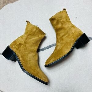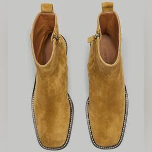EVERLANE The City Boot Toasted Almond Suede Tan Side Zip Block Heel Size 9.5 NEW