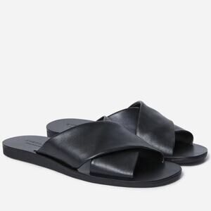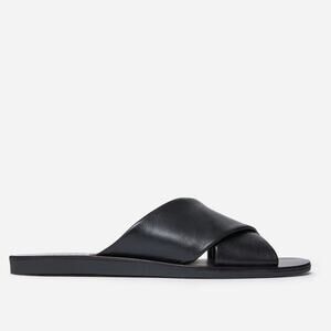 EVERLANE The Day Crossover Sandals Leather Black Flat Heel Slip On 7.5 NEW