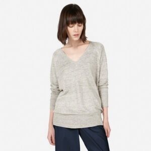 EVERLANE The Deep Vneck 100% Linen Lagenlook Summer Beachy Lightweight Sweater