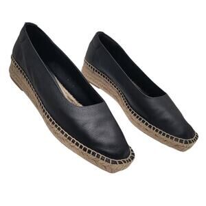 EVERLANE “The Espadrille” Black Leather/Jute Whipstitch & Wedge-Sz 9