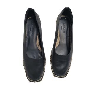 EVERLANE “The Espadrille” Black Leather/Jute Whipstitch & Wedge