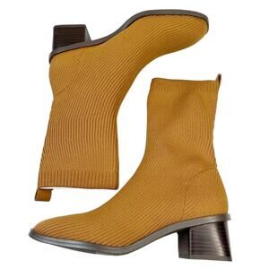 EVERLANE The High Ankle Glove Knit Square Toe Pull On Boots in Toffee