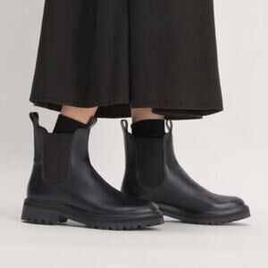 EVERLANE The Lug Chelsea Boot Black Leather Pull On Stretch Ankle Size 9 NEW