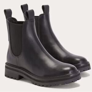 EVERLANE The Lug Chelsea Boot Black Leather Pull On Stretch Ankle Size 9 NEW