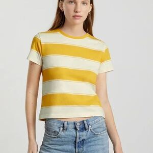 EVERLANE The Organic Cotton Box Cut Tee Lemon Stripe XXXL Casual NWT B73