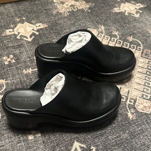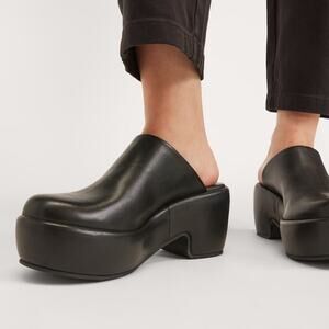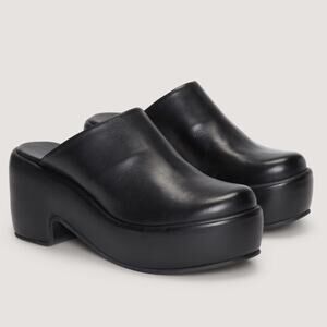 EVERLANE The Puffa Clog 100% Leather Black Slip On Platform Chunky Comfort Size 5.5