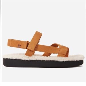 EVERLANE The Renew Teddy Sherpa Faux Fur Sport Sandals in Brown Sugar