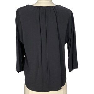 Features: keyhole neckline closed with single button, 3/4 sleeves, pebbled fabric, 100% cupro. New without tags.