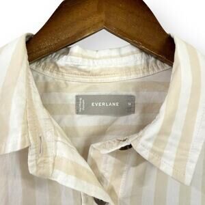 EVERLANE The Silky Cotton Way Short Shirt Sand White Khaki Stripe M Cropped