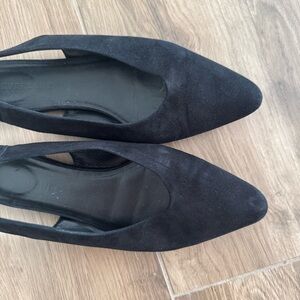 EVERLANE The V Pointed Toe Suede Black Slingback Flats