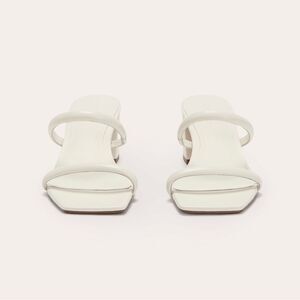 This piece features a 2.15" heel height with a sharp modern square toe, narrow half-rounded bands for a barely there look and feel, leather sourced from a LWG-certifed tannery, recycled leather outsole, and an elastic instep strap that comfortably stretches with your foot.