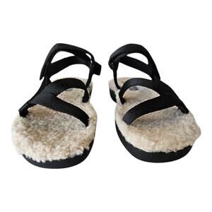 EVERLANE Women's 7 Sandals Renew Teddy Sport Faux Fur Sherpa Lined Black NEW
