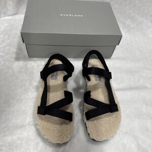 EVERLANE Womens Sandals Renew Teddy Sport Faux Fur Sherpa Lined Sz 8 Black Strap