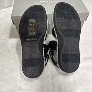 The Everlane Women's Sandals in Renew Teddy Sport Faux Fur Sherpa Lined in size 8 are designed for travel and casual occasions. These black sandals feature a solid pattern with a hook & loop closure and a flat heel style. The strappy design with faux fur lining adds a touch of luxury, while the rubber outsole provides comfort and durability. Perfect for summer, fall, and spring, these sandals are a stylish and versatile choice for any wardrobe.
