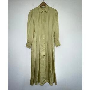 EVERLANE light butter yellow long sleeve textured hammered satin midi maxi dress
