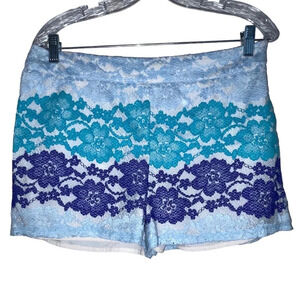 EVERLY Blue Lace Shorts Lined Size Large Side Zip Boho Preppy Colorful Spring