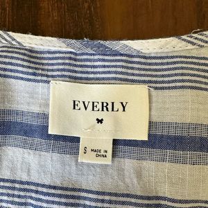 EVERLY Long Sleeve Blue Striped Wrap Top Sz S EUC W7230