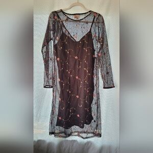 EVERLY Solid Mesh dress w/floral embroidery SIZE S
