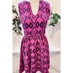 EVERLY V NECK GEOMETRIC FUSIA PINK/BLACK SLEEVELESS SIZE SMALL
