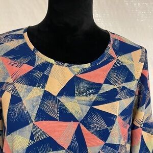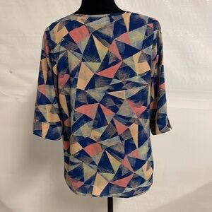 Adorable women’s 3/4 length sleeve blouse. Multicolored abstract pattern. Very flattering top. Size small. Excellent condition.