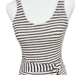 EVERLY black/cream striped tank style fitted dress with waist tie, size S