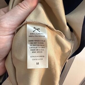Excellent used condition Size medium Pit to pit 19” and 33” length Navy blue and tan colors