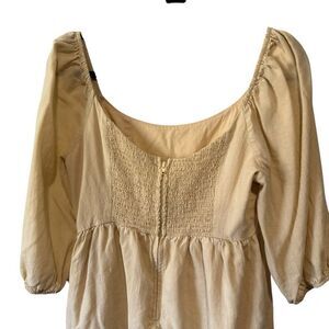 EVERY BABYDOLL DRESS WOVEN SMOCKED SQUARE NECK PUFF SLEEVE COLOR CHAI SIZE S