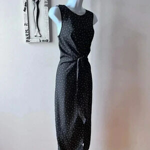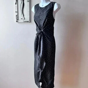 EVIDNT Los Angeles Black Printed Sleeveless Tie Front Midi Dress Size L