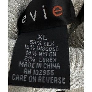 EVIE Womens XL Grey Sparkle Ribbed Turtleneck Silk Blend Long Sleeve Sweater NWT. Has a small pull about 3 from the bottom hem.