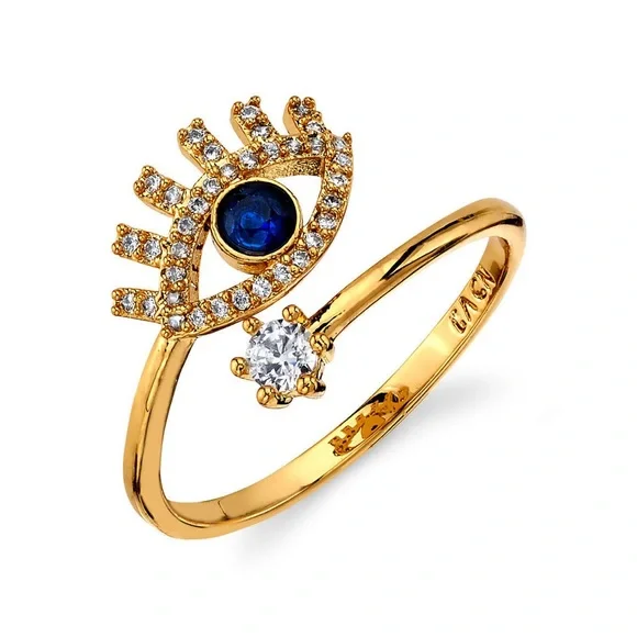 One size. Adjustable band. Made with Cubic Zirconia and Gold dipped.