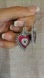 Edgy heart-shaped earrings featuring a striking red and silver design framed with barbed wire style detailing with a rose flower topper. Perfect for adding a touch of grunge or punk goth to any outfit.