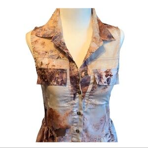 A Cute Dress or Could be worn as Tunic Beautiful Color Pattern’s of Brown’s, Tan, Burgundy, Cream, & Burt Orange