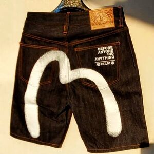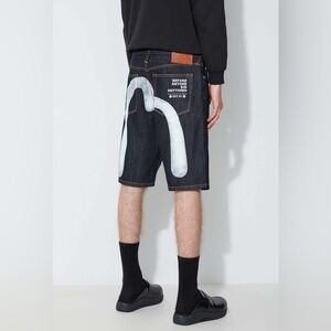 EVISU Graffiti White Spray-Dyed Daicock Print Denim Jeans Shorts NWT w Bag