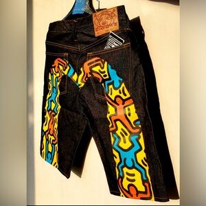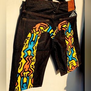 EVISU x Keith Haring Daicock Graffiti Denim Jeans Shorts Monogram NWT w Bag