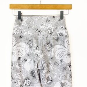 EVOLUTION AND CREATION High Waisted Hi Rise Cropped Leggings White Grey Floral Medium. May fit a small as well. See measurements. Excellent pre-owned condition.