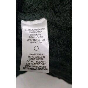 Feel comfortable wearing this EVOLUTION BY CYRUS Sweater Cable Knit Asymmetric Hem Large Olive Green DEFECT. Approximate measurements: length down from the top of shoulder to bottom of hem: 29"; chest width across (armpit to armpit): 22". Condition: new defect - tiny hole on the back side lower bottom - refer to last picture; from pet-free; smoke-free environment; stored in cedar closet/storage. ALL BEST OFFER WELCOME! PLEASE CHECK MEASUREMENTS PRIOR TO PURCHASE