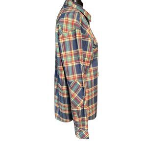 EVOLUTION Women's Button Up Plaid Shirt Plus-size 3XL Long Sleeves Elbow Patches