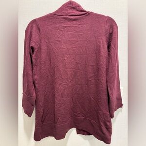 This Evolution by Cyrus sweater is a must-have for any wardrobe. With a flattering V-neckline and button accents, it is perfect for a casual or preppy look. The long sleeves and open style make it suitable for all seasons. Made from a comfortable knit fabric consisting of polyester, nylon, and rayon, this sweater is both stylish and practical. The solid pattern in a beautiful burgundy color adds a touch of sophistication to any outfit.
