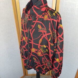 EVR 100% Silk Bomber Jacket Size Large Zip Up Equestrian Theme Red Black 90s