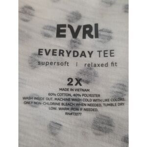 This EVRI Everyday Tee features playful white polka dots on a classic v-neck silhouette, perfect for casual comfort with a touch of style. Its long sleeves and relaxed fit in size 2X make it a versatile wardrobe staple for effortless everyday wear.