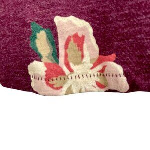 EVRI Everyday Tee Plum Floral V-Neck Long Sleeve Relaxed Fit Cotton Blend 2X